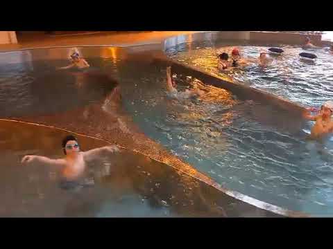 Très vite, des activités différentes sont proposées selon le niveau des enfants et sur les vidéos vous pourrez constater que les plus jeunes se déplacent le long de la goulotte tandis que les plus grands sautent, nagent