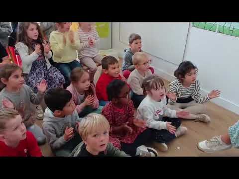 Ils ont appris à frapper les syllabes (les compter). Ils se sont entraînés avec les prénoms des élèves, des titres d'albums lus et étudiés en classe. Puis, ils ont réalisé le même travail avec une comptine et un dialogue qu'il a d'abord fallu mémoriser!