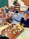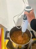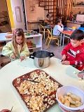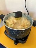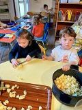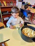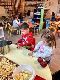 Nous avons coupé les pommes que Laetitia et Maiwenn avaient épluchées. Ensuite nous avons mis les morceaux à cuire dans la marmite et nous les avons mixés .
